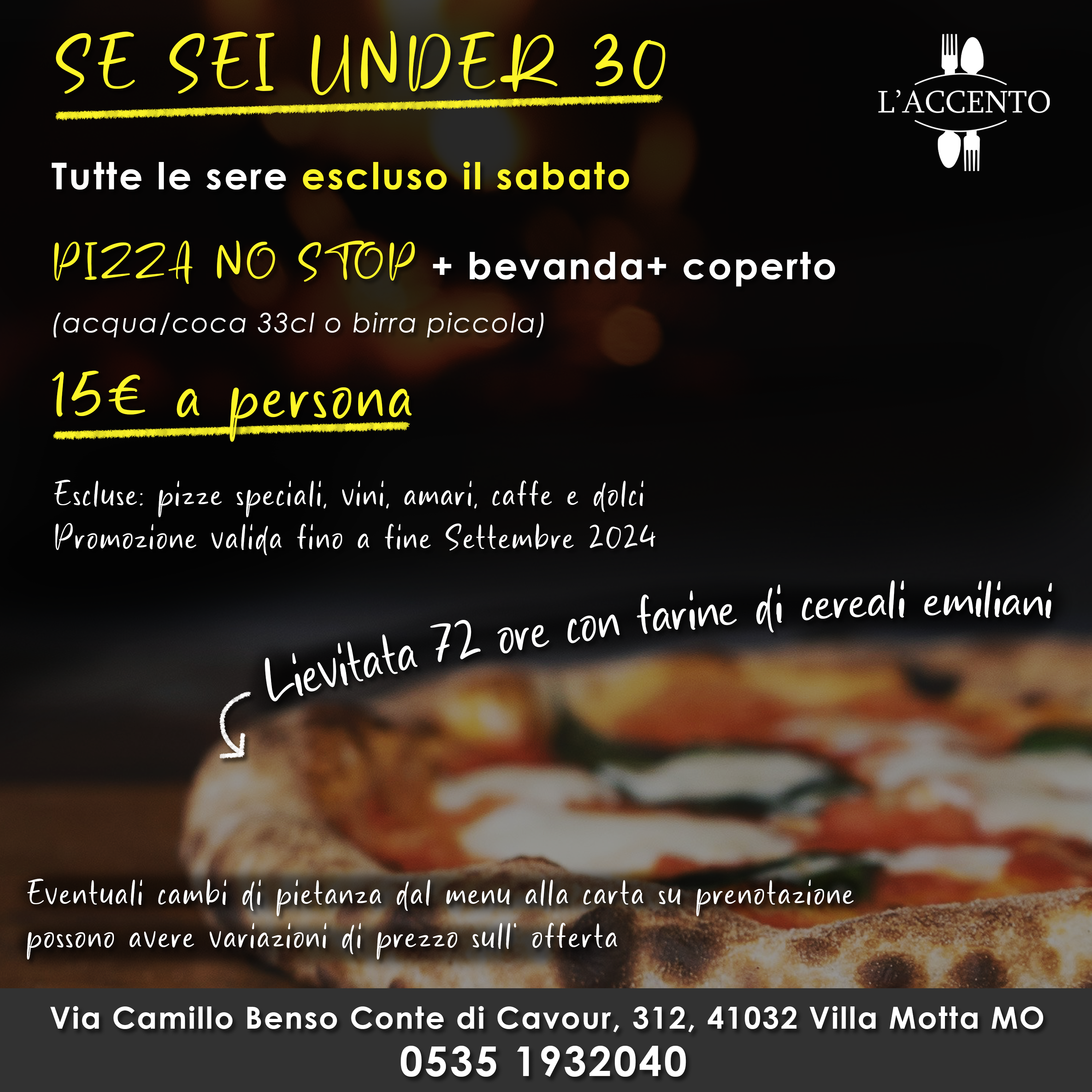 Pizza no stop + bevanda + coperto a 15€ a persona!